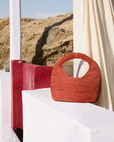 Scopri la borsa Halfmoon, un prodotto di artigianato realizzato a mano in Madagascar con rafia naturale.