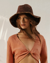 Woven from raffia, it is one size fits all from size 57 to size 60 by the adjustable internal cord.
