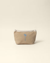 Realizzata in morbida spugna di cotone, questa pochette unisce funzionalità e stile con un tocco estivo e curato.