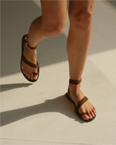 The Chloe sandals wrap the feet in elegance with their essential design, enhanced by a toe strap and an ankle buckle. Crafted from leather, they blend clean lines with a sophisticated texture, combining comfort, stability, and a bold style with a contemporary edge.
