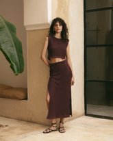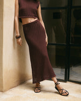 The Salina skirt is a refined take on crochet, blending artisanal character with a modern, effortless silhouette.