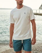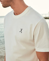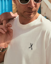 Made from 100% cotton, this lightweight and soft T-shirt features detailed dark navy scissors embroidery.