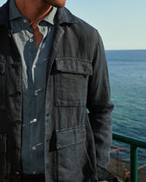 Made in Italy, this sahariana style jacket features four frontal pockets and a chic embroidered palm detail.