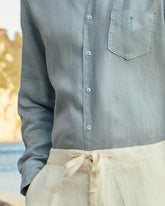 Crafted from soft, breathable linen, it is enhanced by engraved buttons and the palm embroidery, a distinctive symbol of the brand.