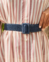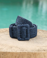 Crafted from natural raffia and finished with a square buckle, this belt is a refined addition to any summer wardrobe.