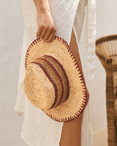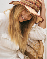 Its wide brim offers ideal sun protection, while the soft structure and tonal contrast make it the perfect accessory for days spent by the sea or in the city.