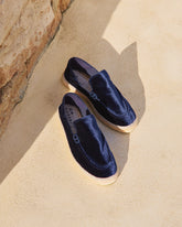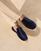 Refined yet relaxed, these navy velvet espadrille loafers bring a touch of elegance to your summer wardrobe.